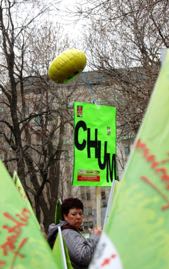 Le message de Québec solidaire allait dans le même sens malgré une recommandation votée à l'assemblée générale annuelle de la région de Montréal demandant que le matériel distribuée dise clairement que « Québec solidaire appuie la lutte et les revendications du Front commun, dont les principales seront explicitement nommées... ». Cependant, une fois n'est pas coutume, pour la première fois depuis longtemps Québec solidaire distribuait un tract lors d'une manifestation.